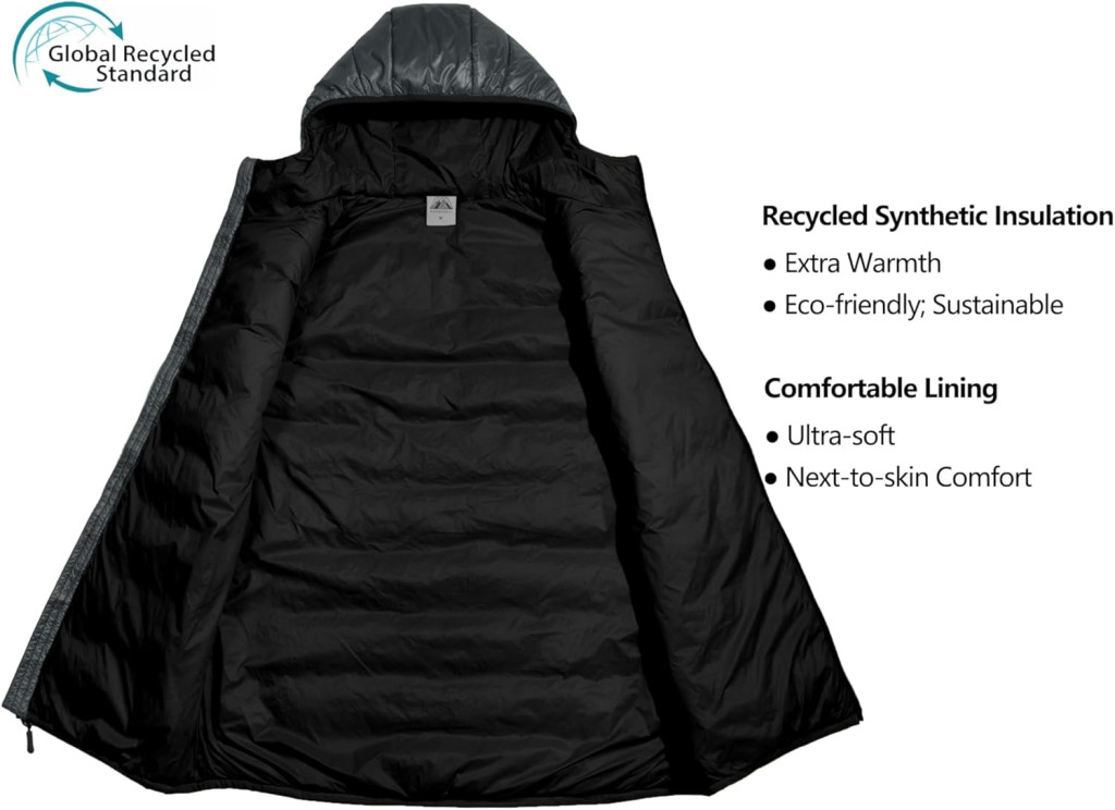 - ♻️ Utilizare sustenabilă a materialelor: Vesta este umplută cu poliester 100% reciclat, reducând amprenta asupra mediului.