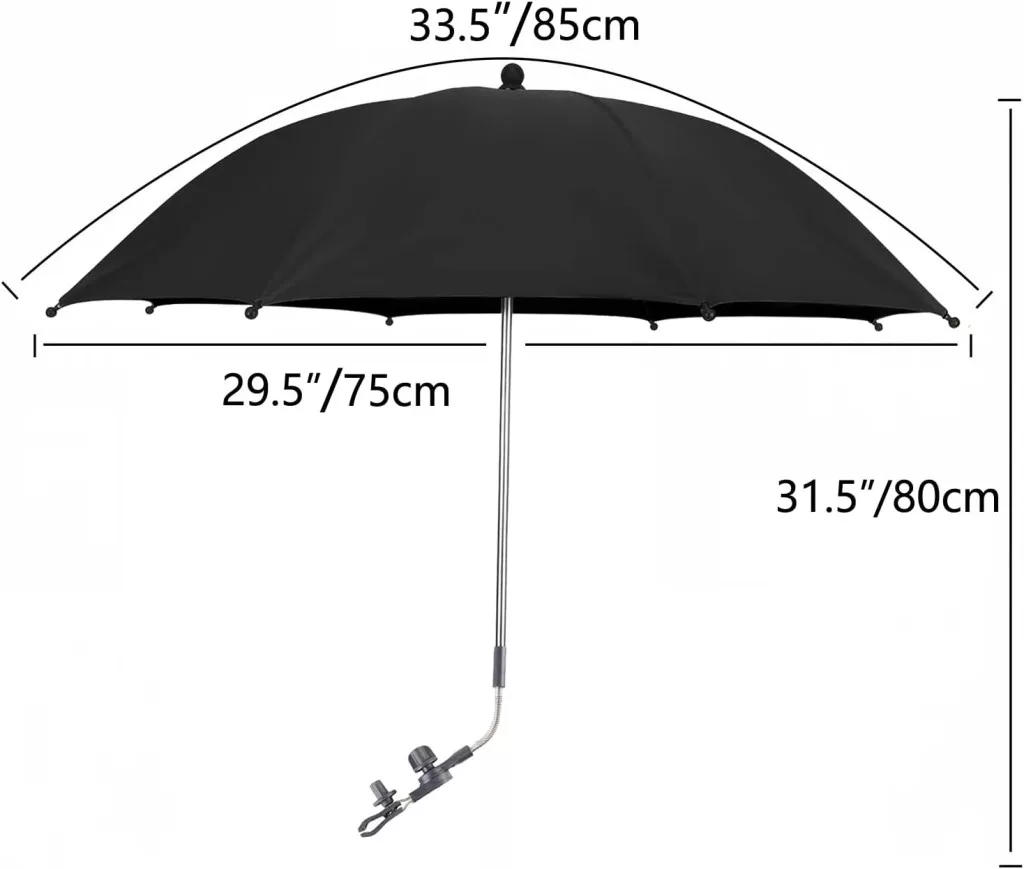 Această umbrelă universală pentru cărucior este soluția perfectă pentru orice părinte care dorește să-și protejeze copilul de razele UV dăunătoare și de expunerea excesivă la soare. Umbrela cu diametrul de 75 cm este compatibilă cu toate cărucioarele standard și, datorită sistemului inovator de clemă ajustabilă la 360°, asigură flexibilitate și protecție maximă.