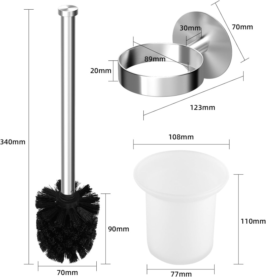 Suportul pentru perie WC MaxDoux, montat pe perete, este accesoriul ideal pentru o baie modernă. Cu o combinație elegantă de oțel inoxidabil și sticlă, nu este doar funcțional, ci și un element decorativ. Sistemul de instalare fără găurire cu adeziv 3M vă permite să-l instalați în câteva minute, fără a deteriora peretele.