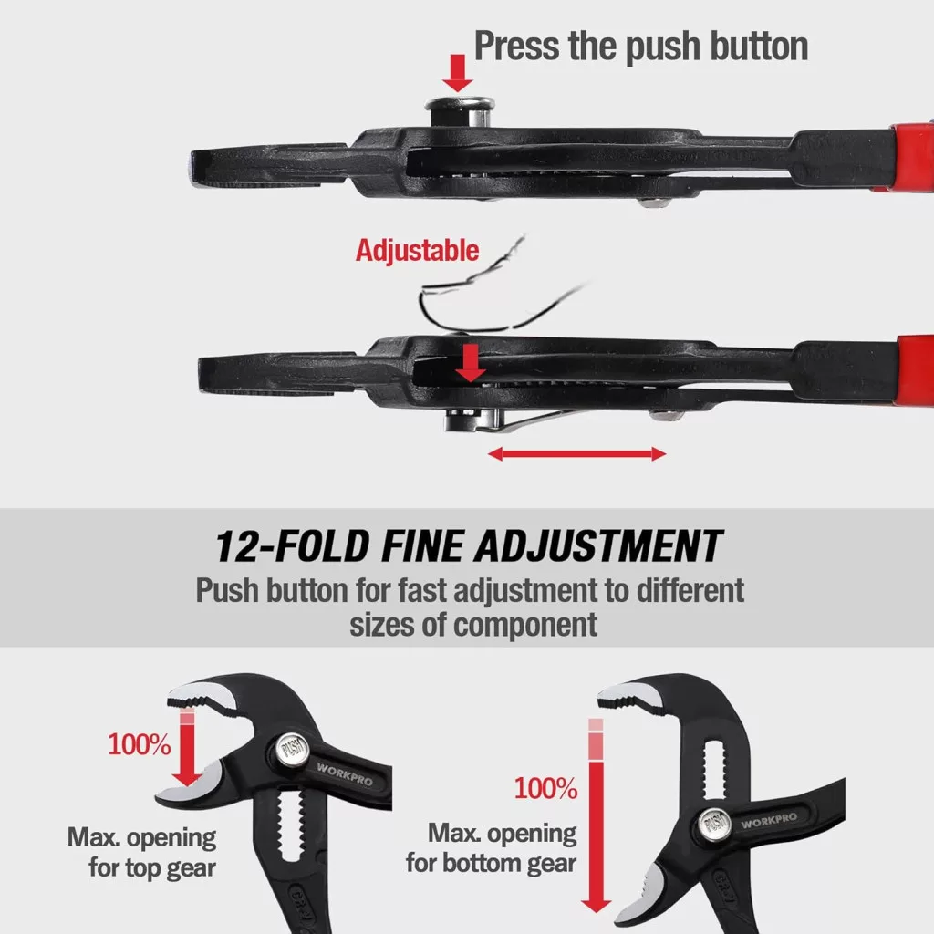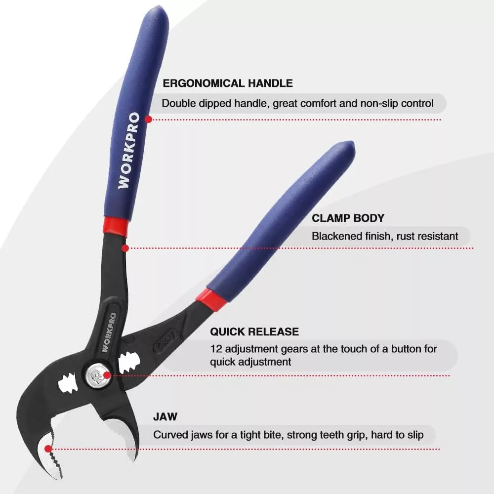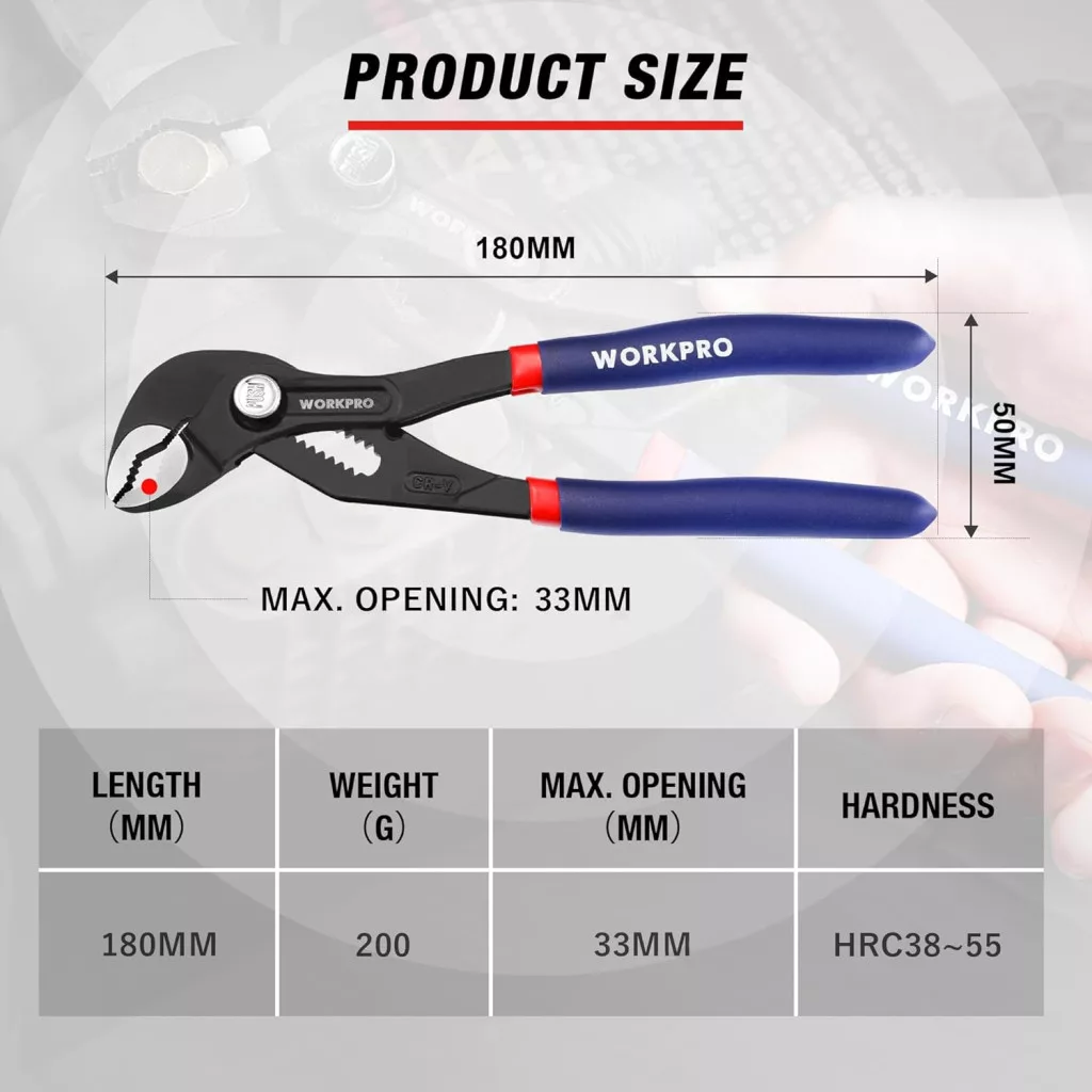 Clește pentru țevi WORKPRO 180mm, oțel Cr-V, reglabil, cu eliberare rapidă