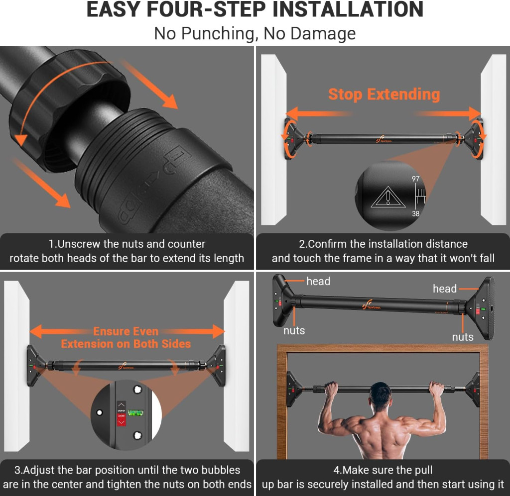 Selectarea tocului de ușă potrivit este crucială pentru o utilizare sigură. Evită plăcile ceramice, sticla sau tocurile de ușă instabile. Bara de tracțiuni este potrivită numai pentru tocuri de ușă solide, capabile să suporte greutate.