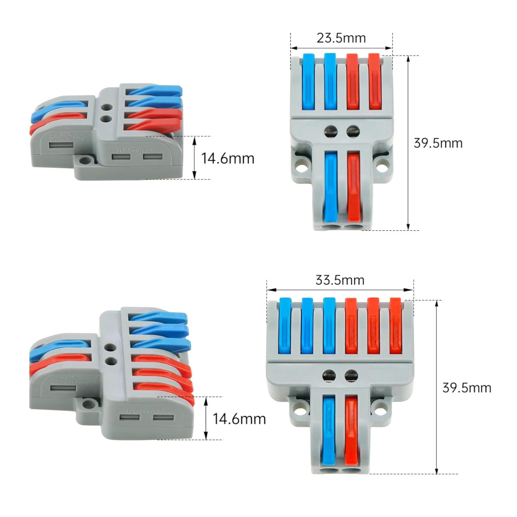 Acest set de conectori compacți este extrem de versatil și poate fi utilizat în numeroase aplicații. Este o alegere ideală pentru conectarea cablurilor electrice casnice, unde siguranța și fiabilitatea sunt prioritare. De asemenea, oferă performanțe excelente în mediul industrial, unde conectarea rapidă și sigură este critică.