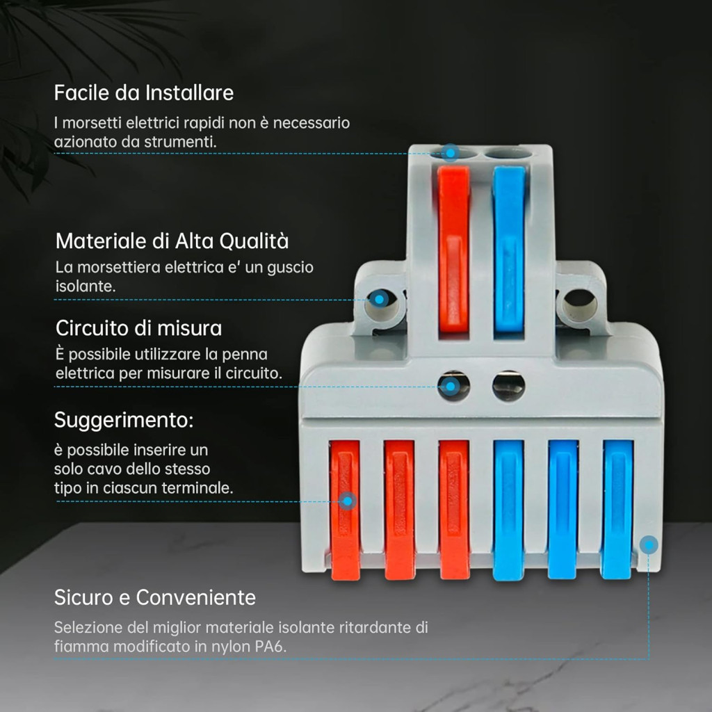 Setul Dreamark de 8 conectori electrici compacți este soluția ideală pentru conectarea modernă a cablurilor electrice. Acest produs de calitate profesională constă din două modele diferite: variante cu 6 și 4 conectori, care se adaptează flexibil la cele mai diverse aplicații electrice. Setul poate fi instalat complet fără scule, urmând doar o metodă simplă de conectare prin împingere.