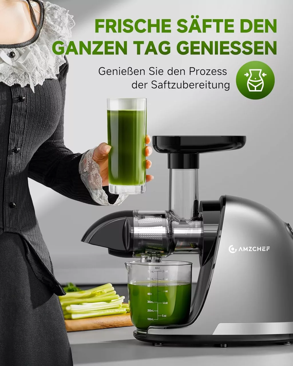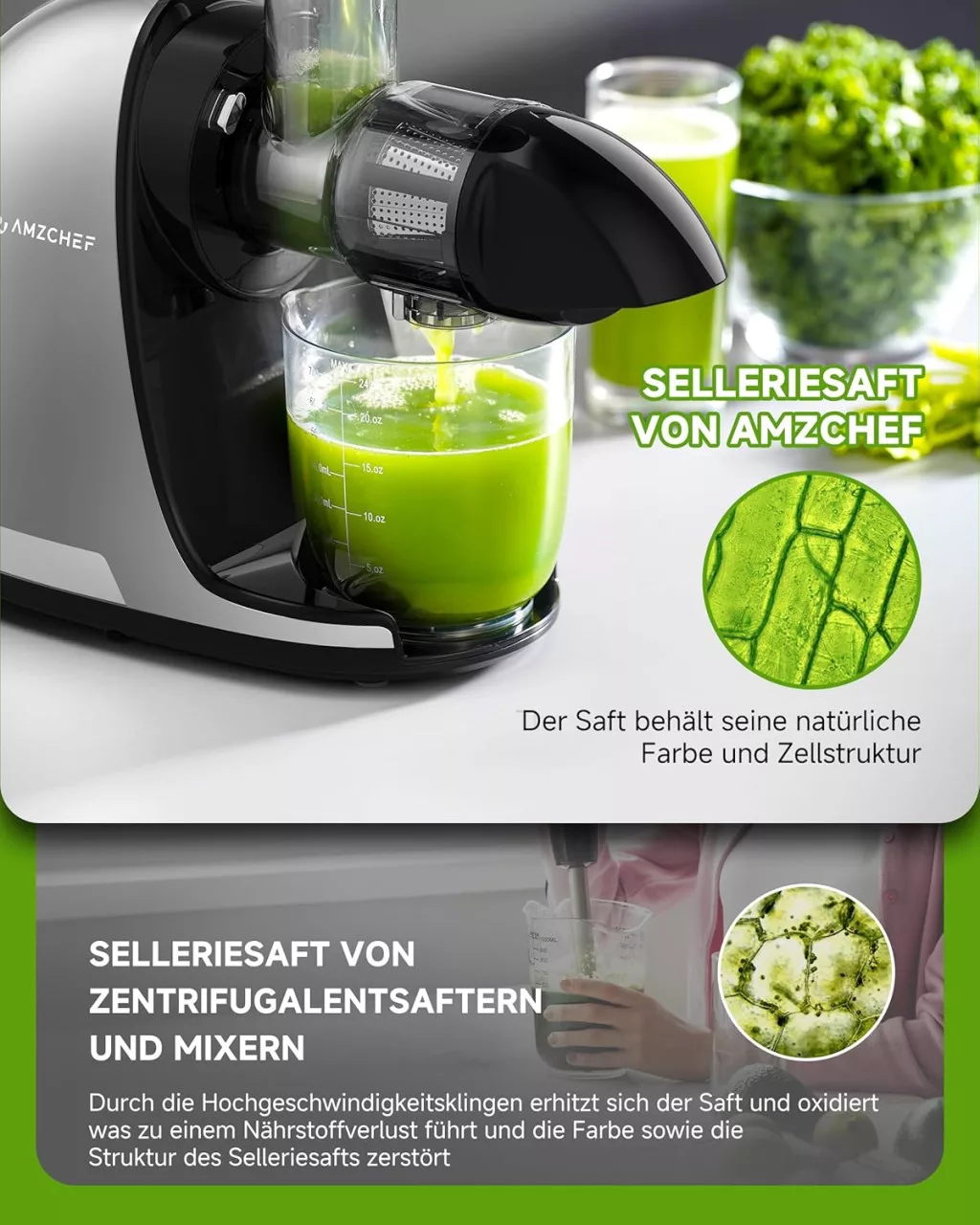 Az AMZCHEF Slow Juicer professzionális gyümölcs- és zöldségprés, amely forradalmasítja a friss ivólevek készítését: