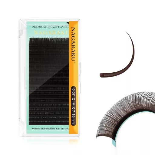 Setul de gene false maro închis NAGARAKU este alegerea perfectă atât pentru stiliștii de gene profesioniști, cât și pentru utilizatorii cu experiență. Grosimea de 0,07 mm și curbura D asigură un echilibru ideal între durabilitate și aspect natural. Firele cu lungimi mixte de 7-15 mm permit o aplicare personalizată, astfel încât puteți obține un rezultat perfect pentru fiecare client.