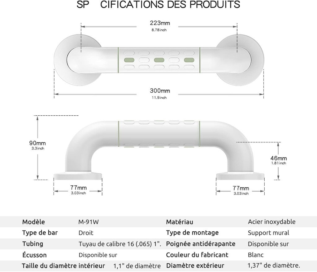 Barele de sprijin pentru baie modunful reprezintă combinația perfectă de siguranță și stil. Această bară de sprijin de 30 cm, fabricată din oțel inoxidabil, este special concepută pentru a oferi un sprijin maxim în baie, lângă toaletă și pe scări. Designul modern, minimalist, se potrivește cu orice decor de baie, în timp ce suprafața antiderapantă patentată și inelele luminoase asigură siguranța chiar și în întuneric.