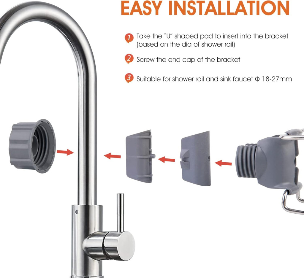• Fúrás nélküli szerelés: Nincs szükség fúrógépre vagy szerszámokra, egyszerűen csúsztassa a pultot a zuhanyrúdra
