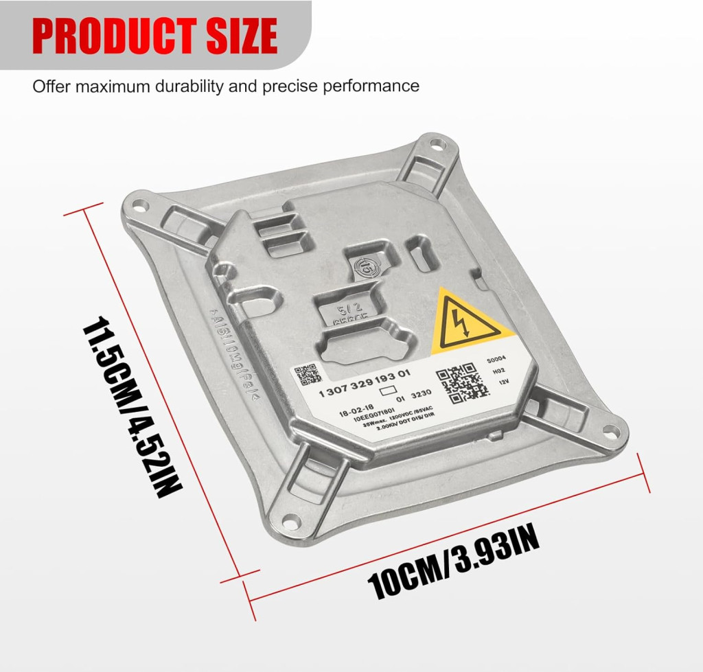 Acest modul profesional de control balast xenon HID este o componentă de înaltă calitate, dezvoltată pentru mașinile de lux și modelele sport BMW. Este proiectat ca o soluție de înlocuire pentru piesa originală de fabrică cu numărul OEM 63117182520, garantând compatibilitate perfectă și funcționare fiabilă. Modulul funcționează la o tensiune de 12V-1200V DC și 85V AC, cu o putere de 35W și este compatibil cu becuri xenon de tip D1R/D1S.