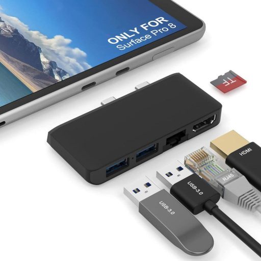 Această stație de andocare versatilă este accesoriul perfect pentru Microsoft Surface Pro 8. Hub-ul 5 în 1 vă permite să transformați două porturi USB-C în 5 porturi utile, inclusiv LAN Ethernet RJ45 de 100 Mb/s, port HDMI 4K, 2 porturi USB 3.0 și un cititor de carduri TF (Micro SD).