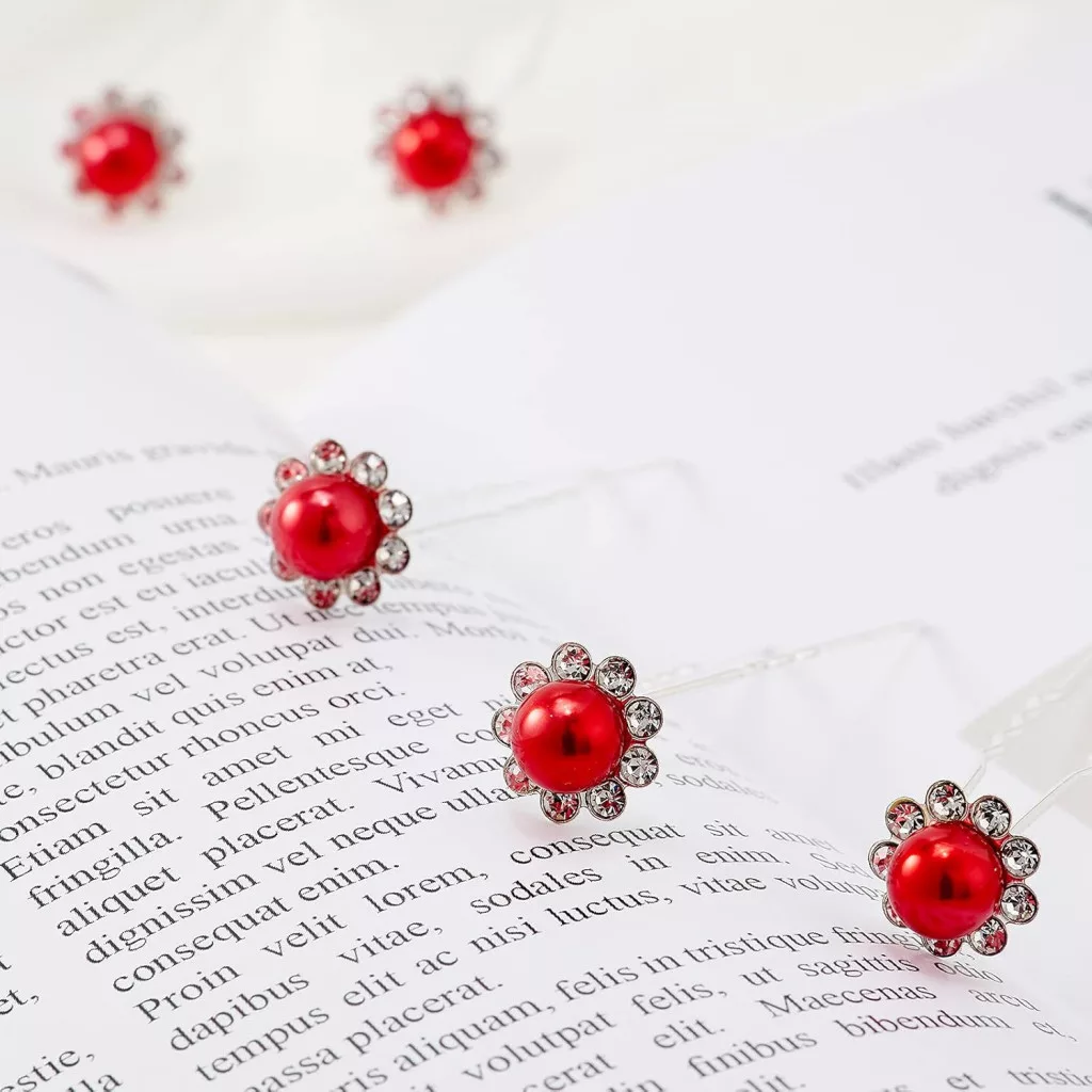 ZOUIQSS Agrafe de Păr Florale cu Perle - 20 buc Agrafe Roșii cu Strasuri
