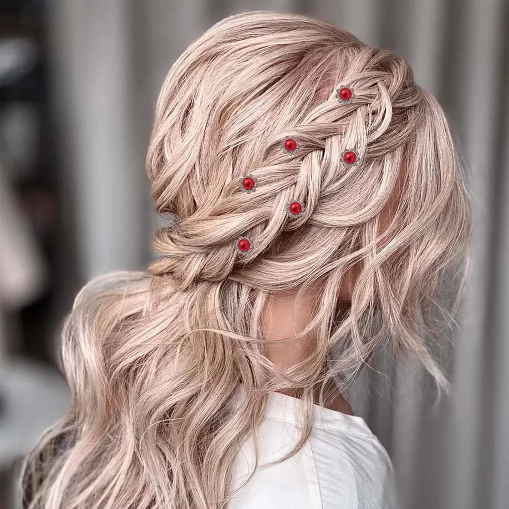Agrafele de păr arată deosebit de bine în coafuri ridicate, cocuri sau păr semi-prins. Pot fi folosite individual, ca element accentuat, sau combinate mai multe pentru un accesoriu de păr spectaculos. Culoarea roșie evidențiază părul închis la culoare, dar arată frumos și în părul blond sau șaten deschis, creând un efect de contrast.