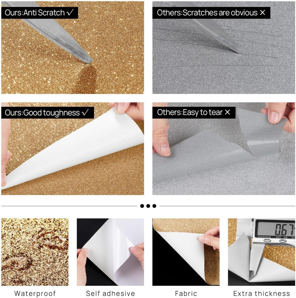 • Material: Tapet cu sclipici pe bază de țesătură premium, cu o textură similară șmirghelului fin