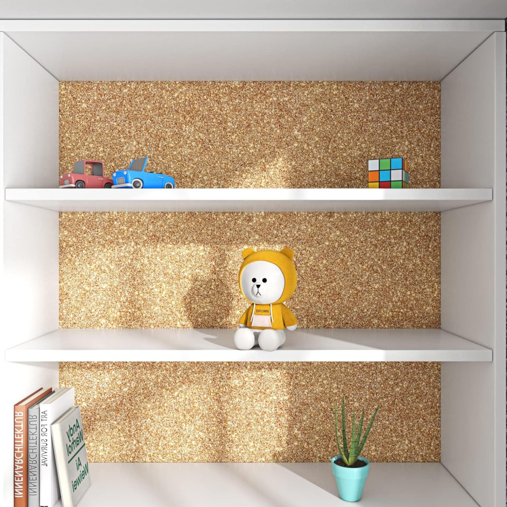 Tapet autoadeziv auriu cu sclipici FunStick 240 cm - Decor de perete strălucitor cu sclipici