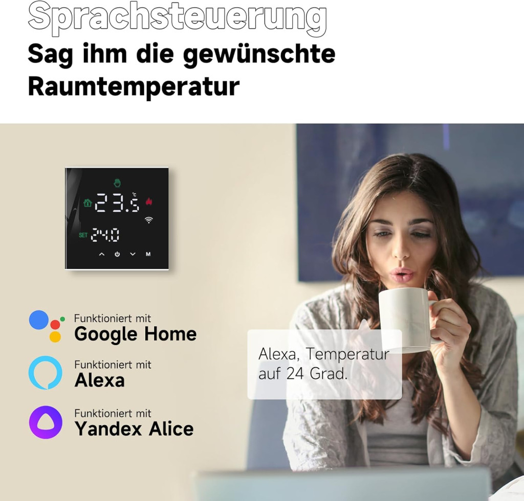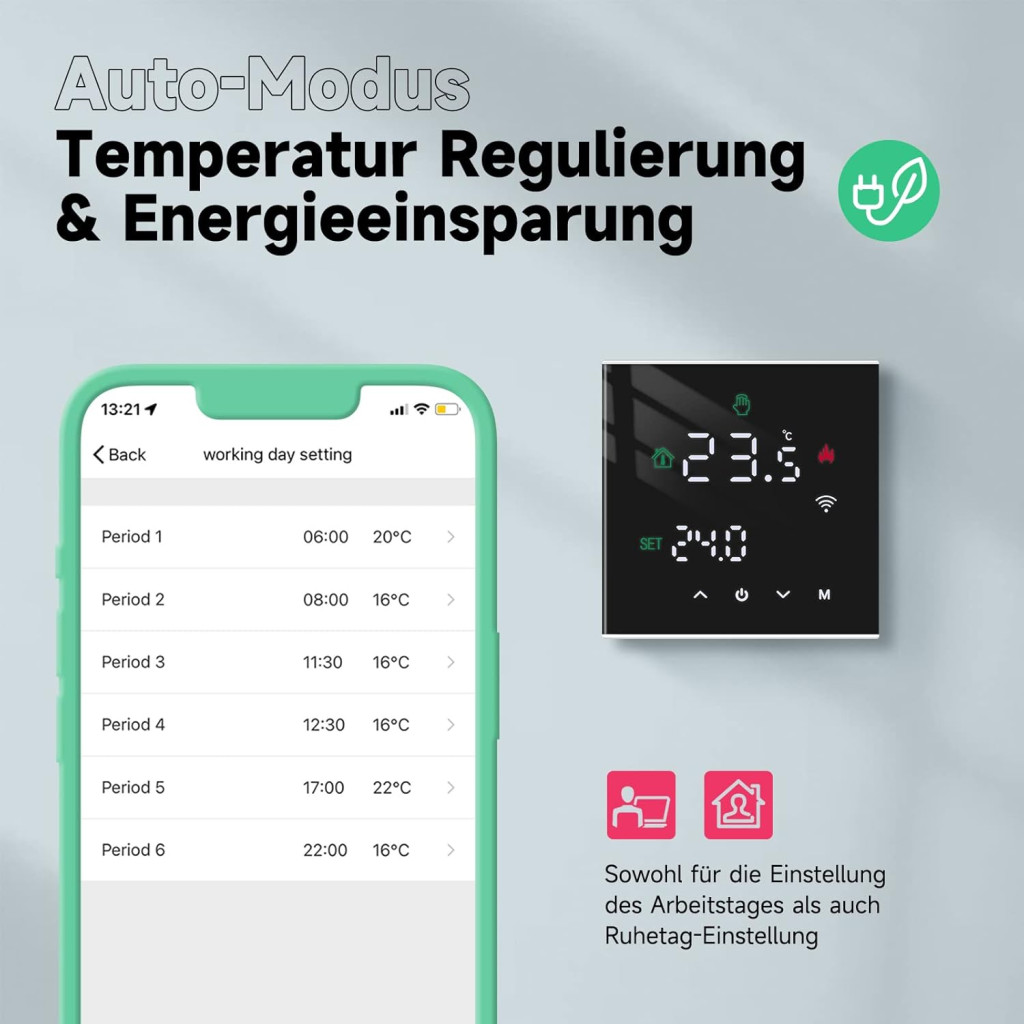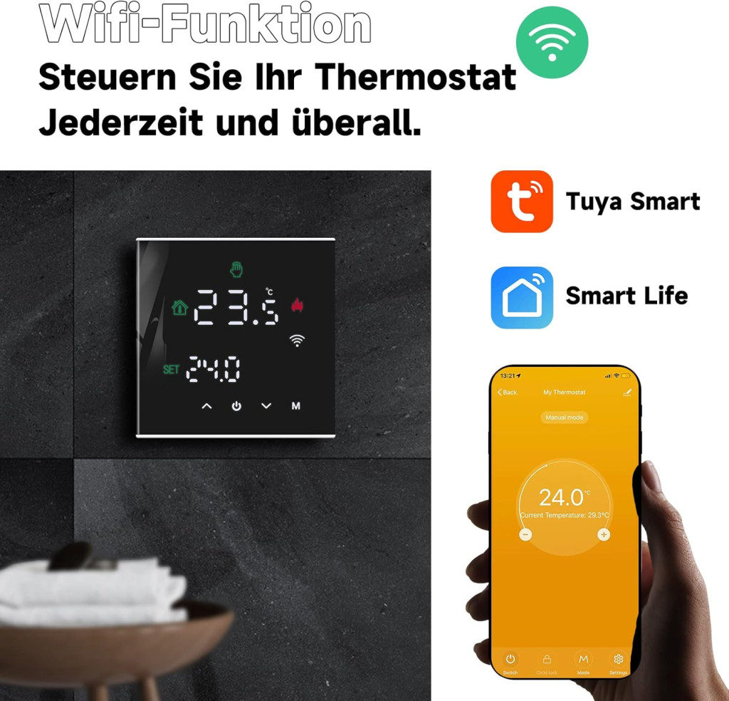 - ???? Conexiune WiFi și control prin smartphone - Controlați-vă sistemul de încălzire de oriunde prin aplicația Tuya