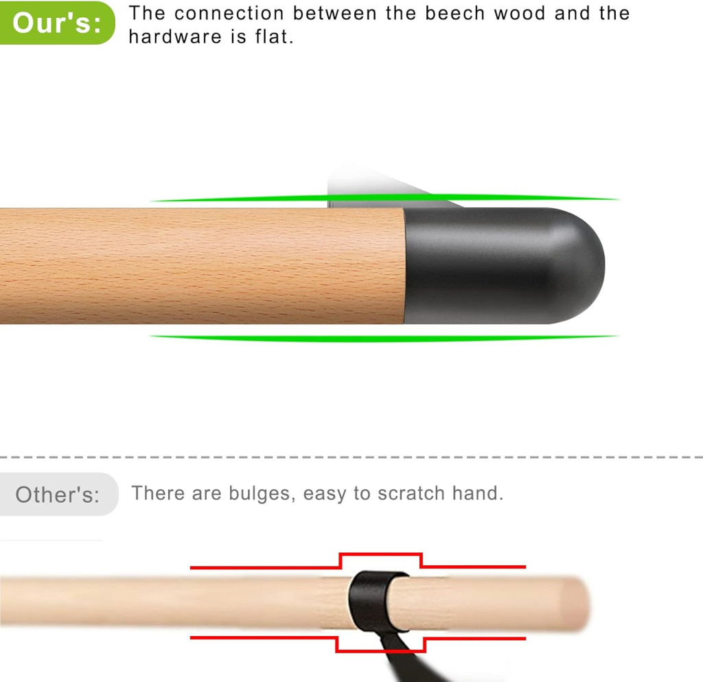 • ✅ Bară din lemn de calitate premium, cu suprafață netedă, care asigură o prindere confortabilă
