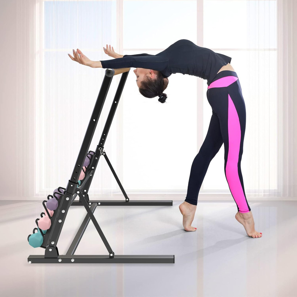 Bară de Balet Portabilă Kipika - Balustradă de Dans Pliabilă pentru Antrenament Acasă, 4 Înălțimi, Suport Greutăți, 101 cm, Design Metal-Lemn
