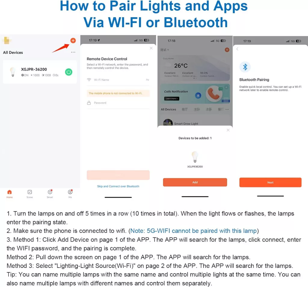 Notă: Lampa funcționează cu rețele WiFi de 2.4GHz; rețelele WiFi de 5G nu sunt acceptate.