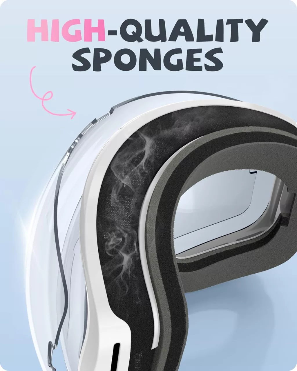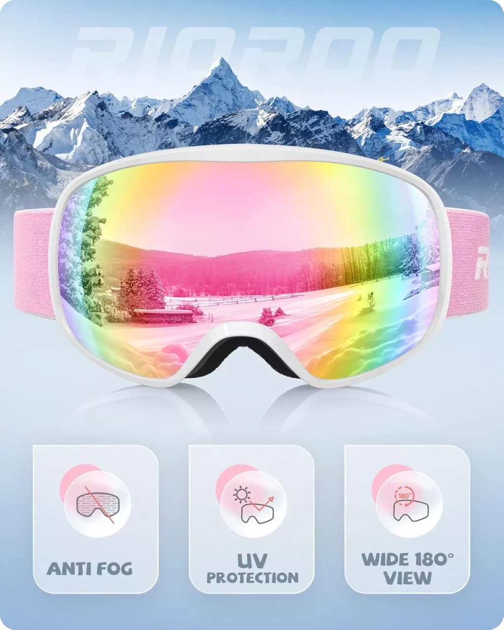 Materialul moale TPU al ramei nu este doar sigur, ci asigură și confort pe tot parcursul zilei. Lentilele duble formează o barieră termică, care rezistă eficient la aburire, oferind în același timp o vedere panoramică și o claritate cristalină. Ochelarii de schi RIOROO au un sistem unic de flux de aer, care elimină rapid și eficient umezeala, astfel încât copiii să se poată bucura nestingheriți de aventurile de iarnă.