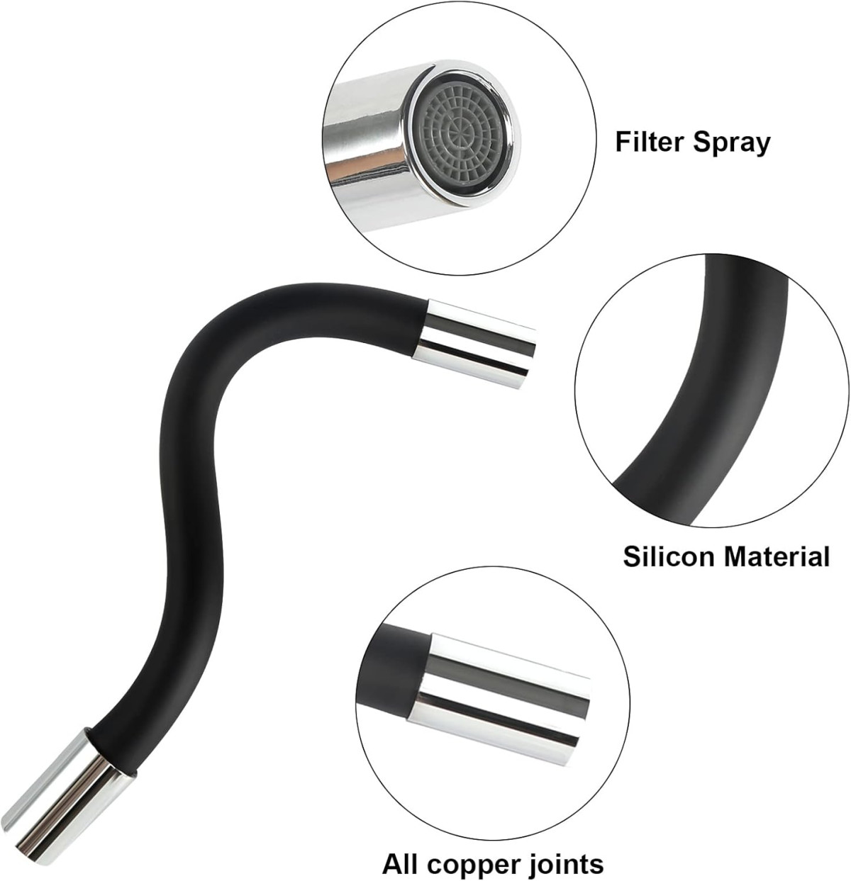 - ???? Pivotare la 360 de grade: Extensia robinetului poate fi rotită în orice unghi și direcție, astfel încât să poată fi ajustată perfect la nevoile dumneavoastră actuale.