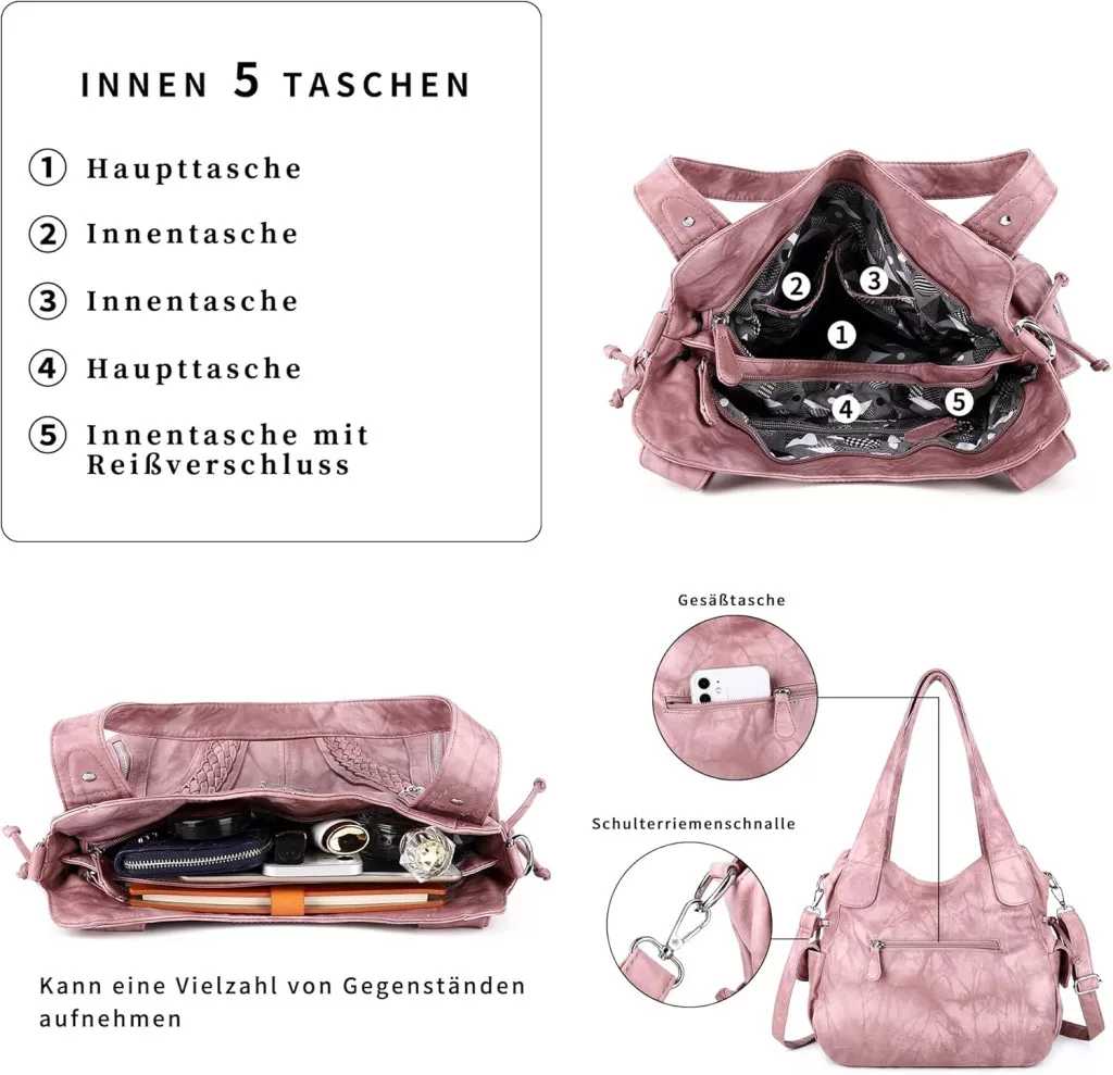 • Poate fi purtată 3 în 1: Geantă de mână, geantă de umăr sau geantă crossbody - alegeți cea mai confortabilă modalitate