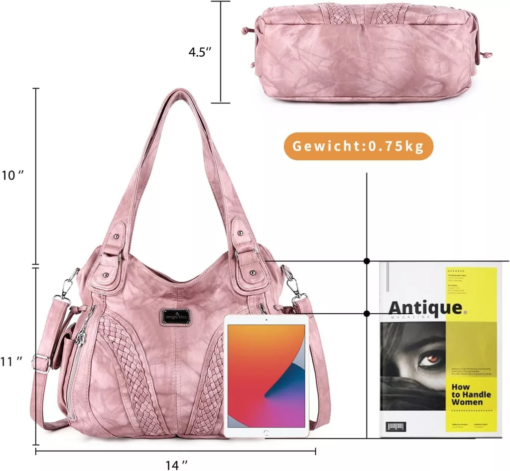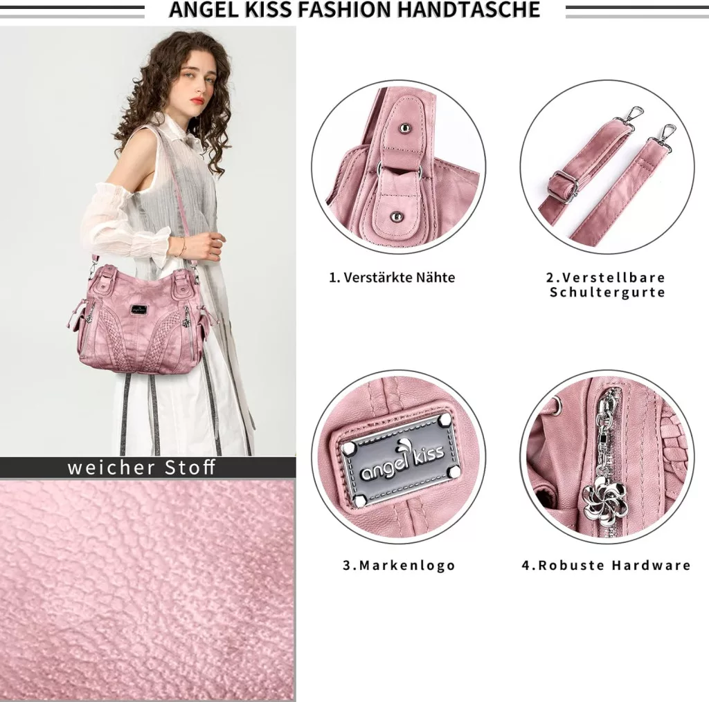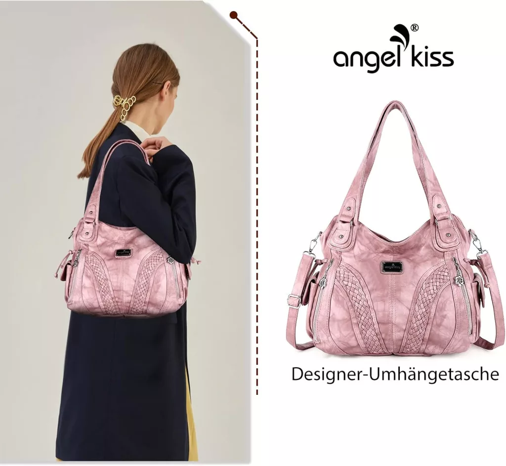 Geantă de umăr de damă Angel Kiss, impermeabilă, din piele sintetică multifuncțională, roz, cu fermoar