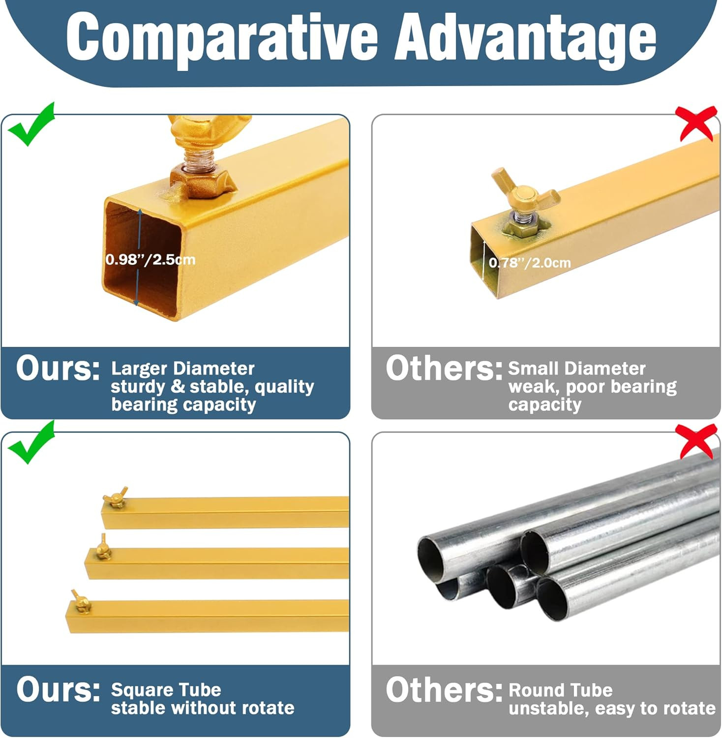 Montajul este extrem de simplu: toate componentele trebuie doar îmbinate în poziția corectă. Șuruburile dintre tuburile în formă de L și cele drepte asigură o conexiune strânsă și sigură. Bazele sunt plasate la baza structurii, asigurând un suport stabil și sigur.