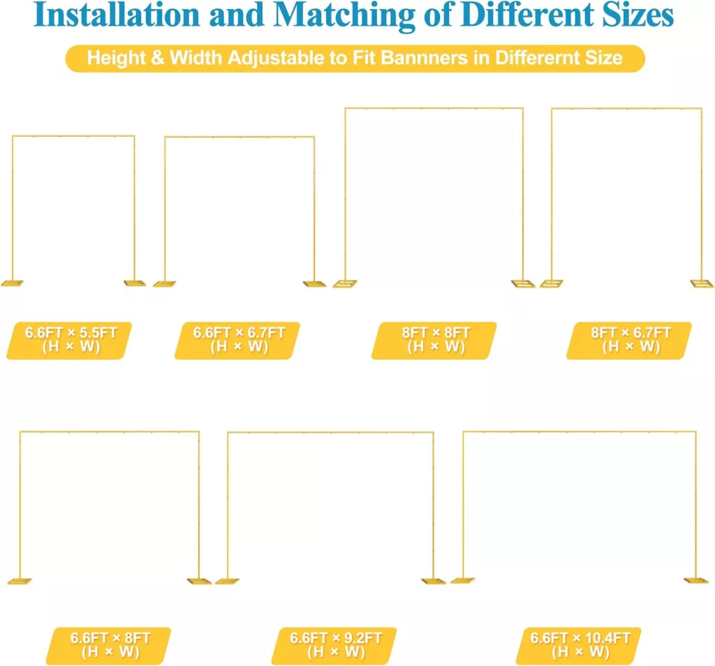 ???? Sfat: Atât înălțimea, cât și lățimea suportului pot fi reglate, adaptându-se perfect cerințelor evenimentului dumneavoastră. Gama de dimensiuni între 1.1 x 1.5 metri și 2.4 x 2.4 metri oferă o soluție pentru aproape orice situație.