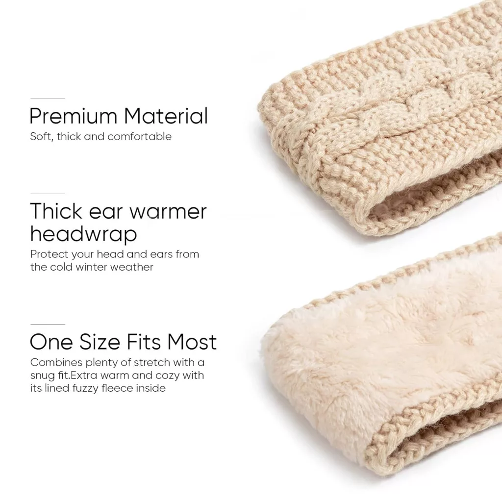 DRESHOW bandă de păr călduroasă, tricotată, pentru femei, încălzitor de urechi de iarnă, cu căptușeală groasă din fleece