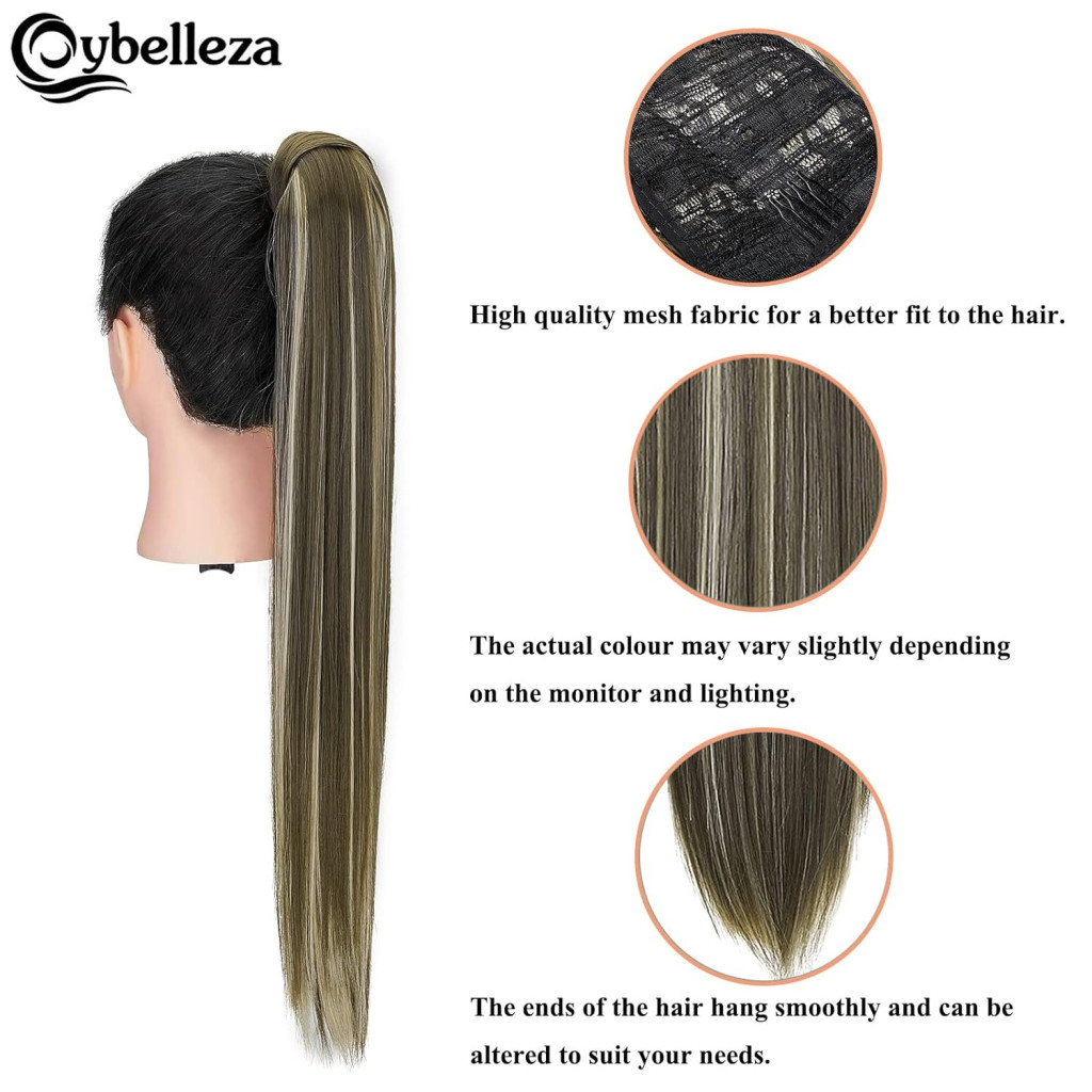 Extensie de păr coadă de cal cu clips Cybelleza - 60 cm Extensie de păr drept, 125g Blond Cenușiu și Blond Închis, Volumizare hipoalergenică pentru păr, pentru femei