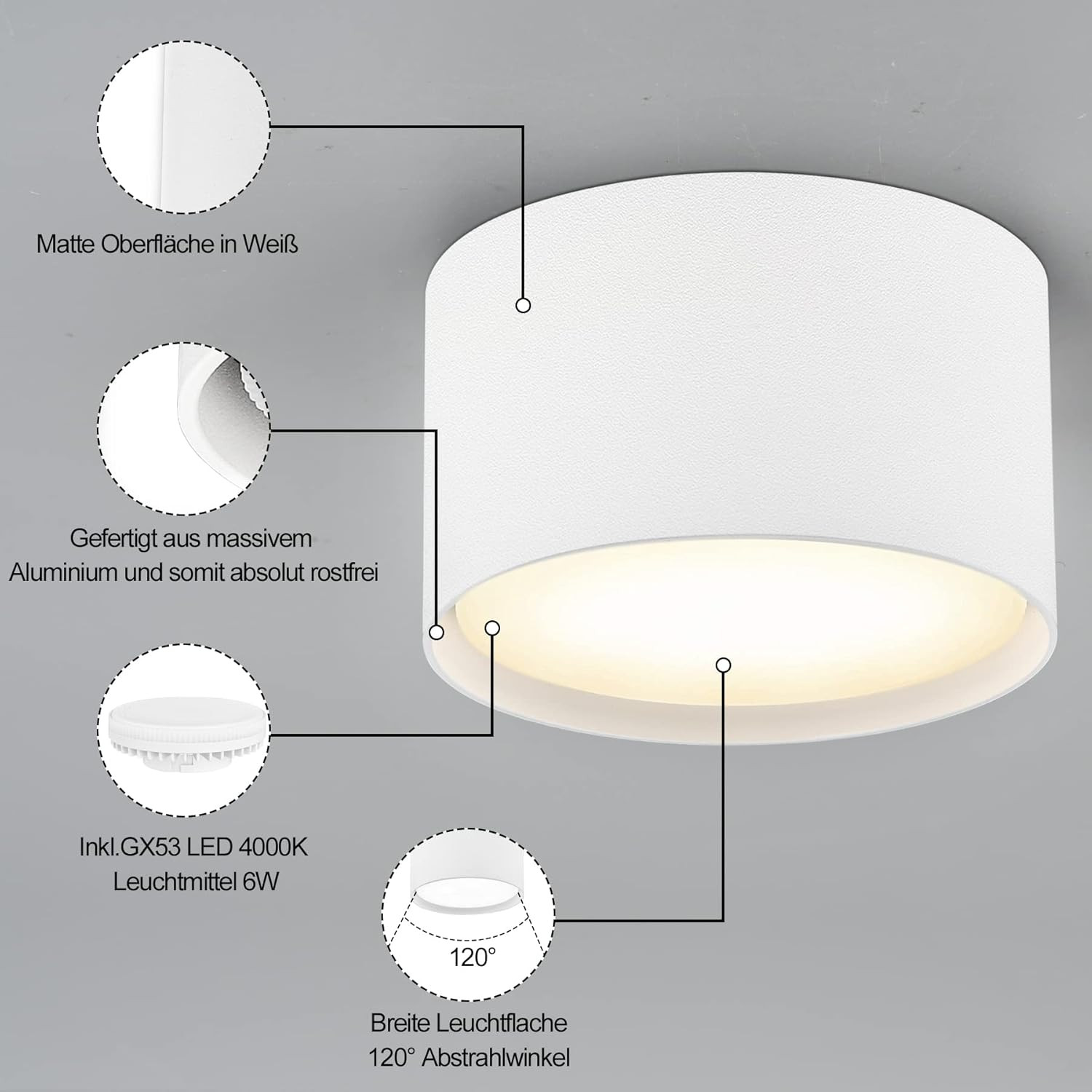 BOYIR LED Spot încastrat GX53 6W Alb Cald 3000K Rotund Aluminiu Lampă de Plafon