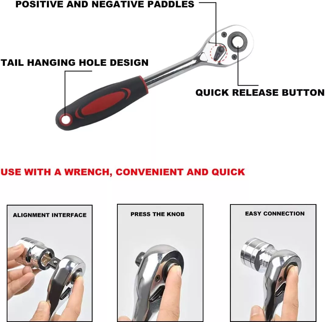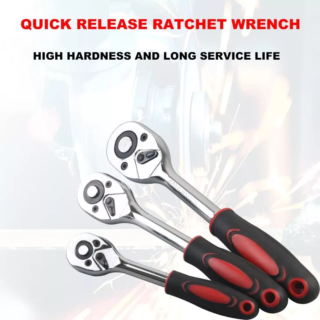 Acest set de chei cu clichet oferă calitate profesională la un preț accesibil. Materialul din oțel CR-V garantează o durată lungă de viață și fiabilitate. Este echipat cu funcția de clichet reversibil și buton de eliberare rapidă, care asigură o muncă eficientă. Setul complet vine într-un ambalaj practic, care este ușor de transportat și depozitat. Este o alegere ideală pentru meșteri, mecanici și pentru cei care efectuează lucrări de reparații casnice.