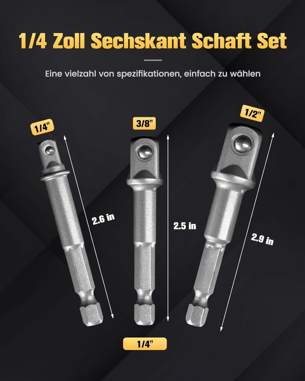 • 3 dimensiuni de adaptoare: 1/4, 3/8 și 1/2 inch - toate dimensiunile necesare într-un singur pachet