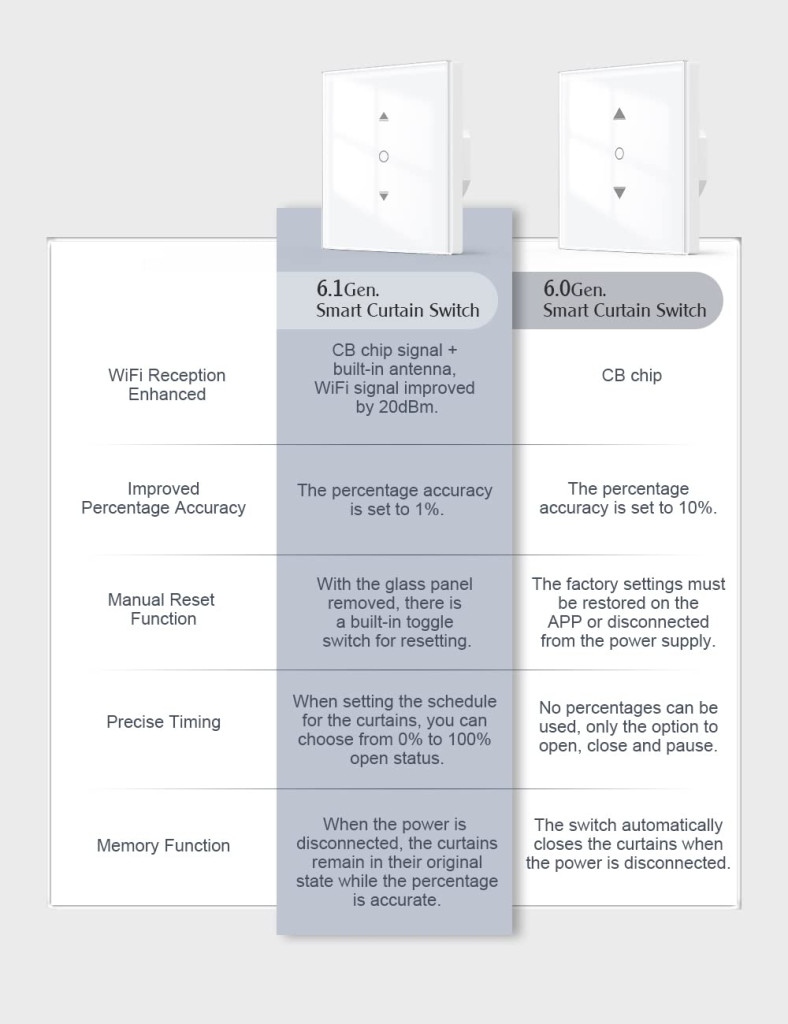 Întrerupătorul WiFi pentru jaluzele Maxcio de generația 6.1 este alegerea perfectă pentru cei care doresc să își modernizeze casa și să se bucure de confortul unei case inteligente. Funcțiile de control vocal, temporizare și acces de la distanță sporesc semnificativ confortul și eficiența casei, în timp ce controlul procentual precis permite crearea unor condiții perfecte de iluminare în orice moment al zilei.