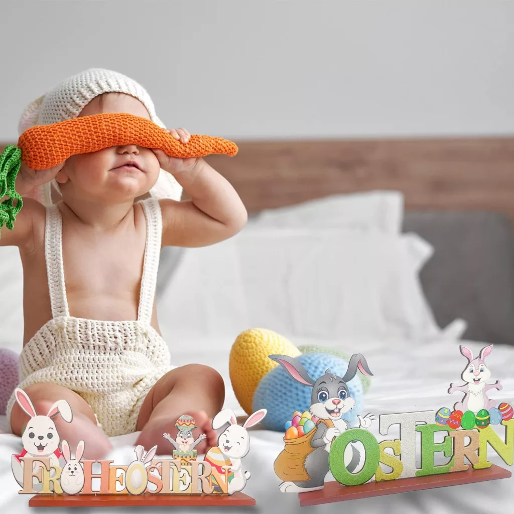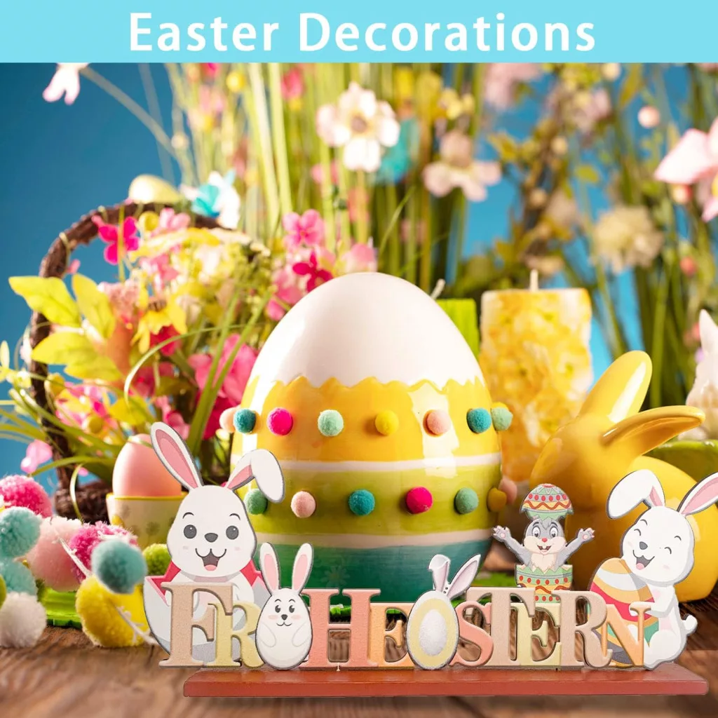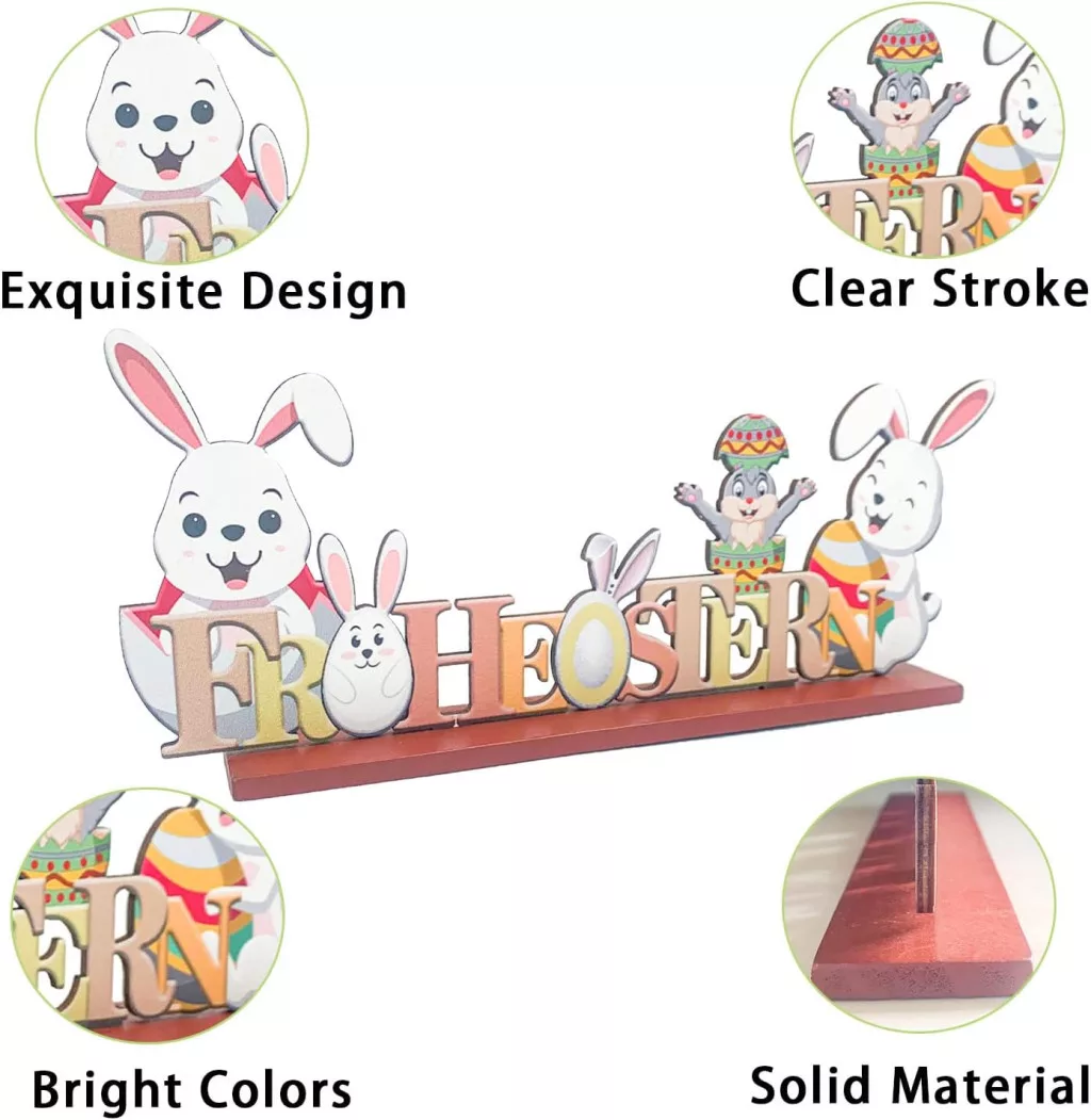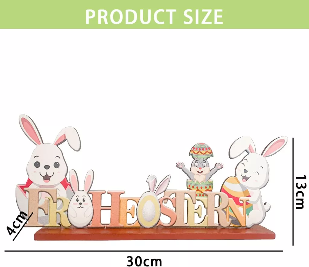 Decorațiune Inscripție din Lemn de Paște cu Iepuraș - Ornament de Masă Prezentare Generală a Produsului