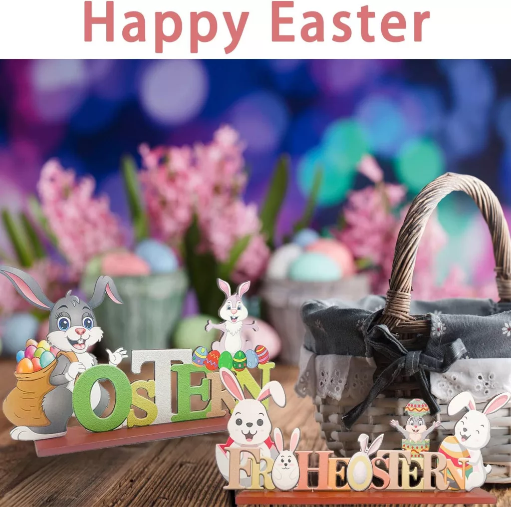 Culorile vii și designul jucăuș al decorațiunii creează instantaneu o atmosferă de primăvară. Figurina drăguță a iepurașului de lângă inscripție întruchipează perfect spiritul Paștelui și garantează că va aduce un zâmbet pe fețele tuturor membrilor familiei și oaspeților.