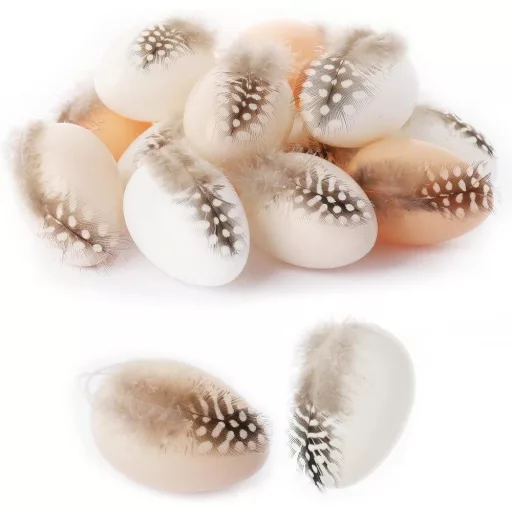 Spre deosebire de ouăle tradiționale din plastic, aceste ornamente cu pene creează un efect mult mai natural. În comparație cu ouăle vopsite sau cu autocolante, sunt mai durabile și mai rezistente în timp. Iar spre deosebire de ouăle reale, nu se sparg, astfel încât pot fi refolosite an de an.