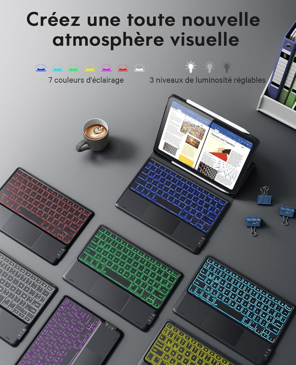 • Tastatură Bluetooth cu iluminare de fundal în 7 culori