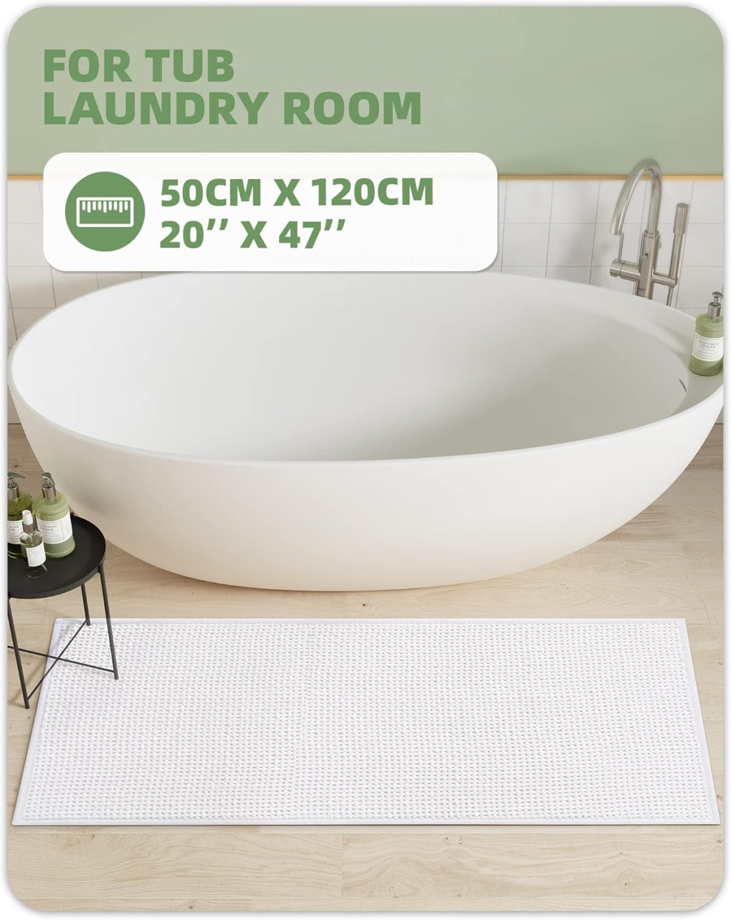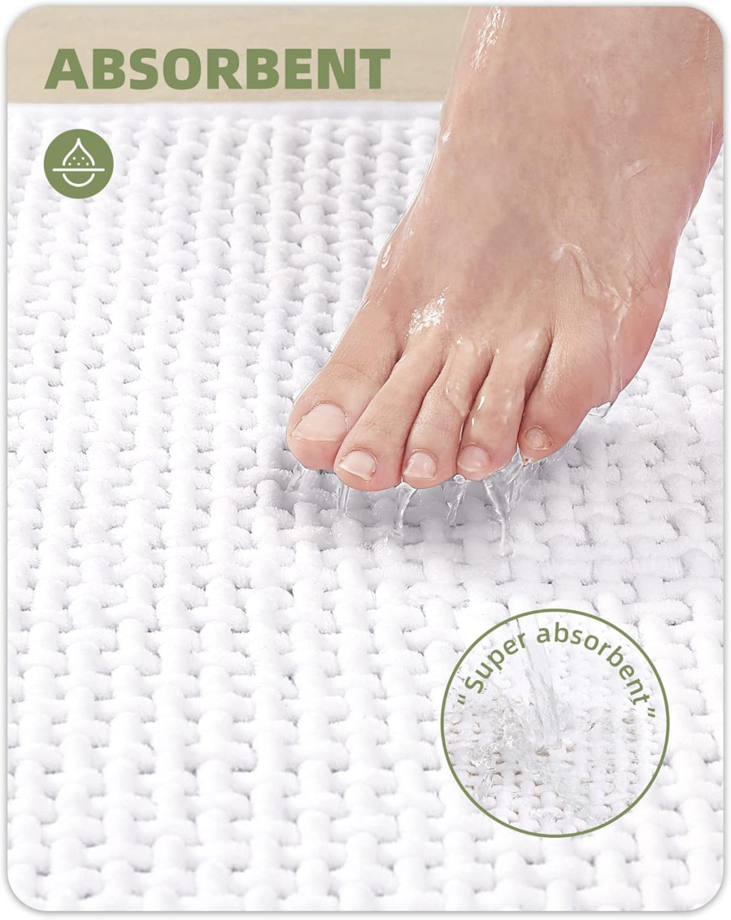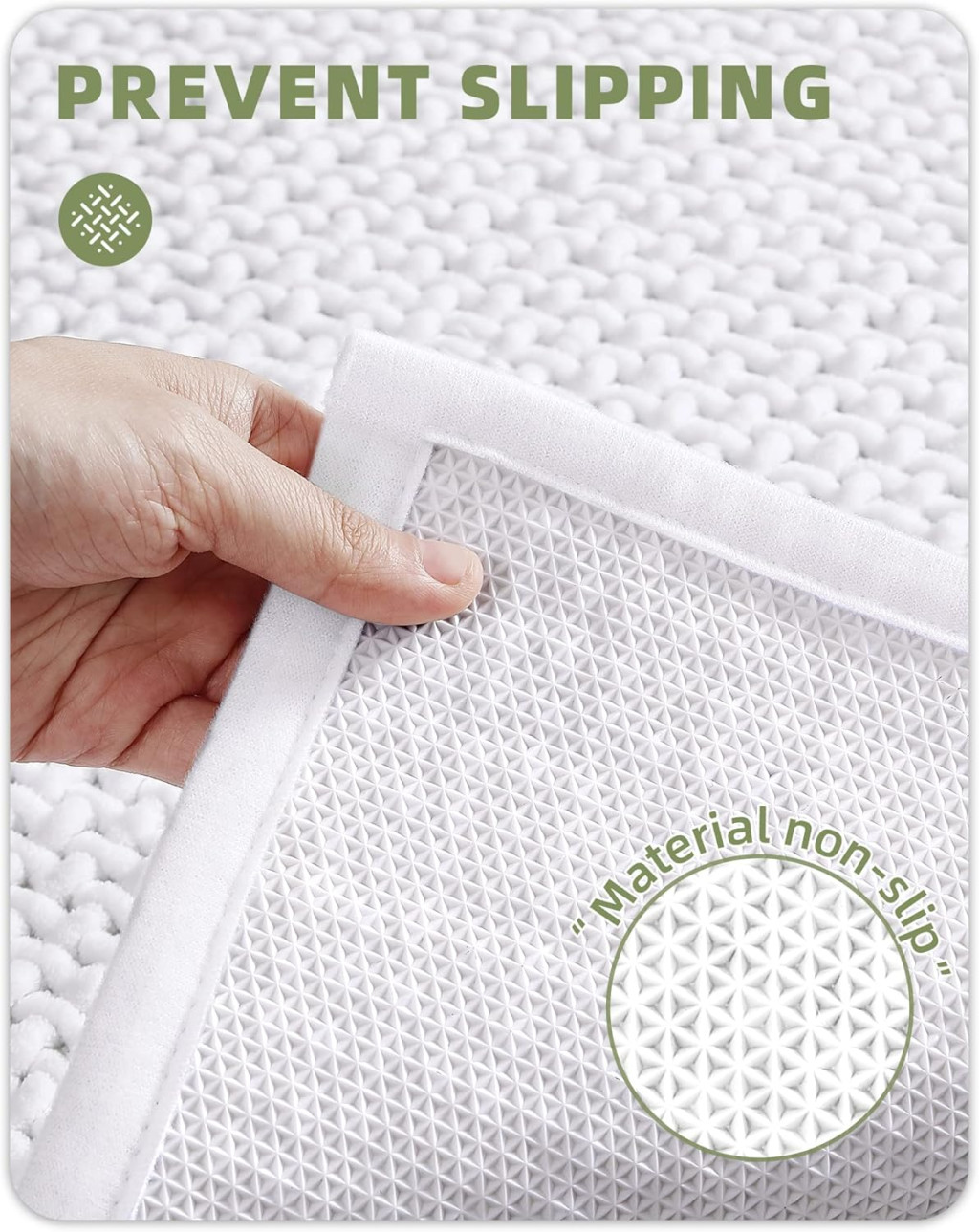 Covor de baie COLOR&GEOMETRY 50x120cm Alb Antiderapant Lavabil Chenille