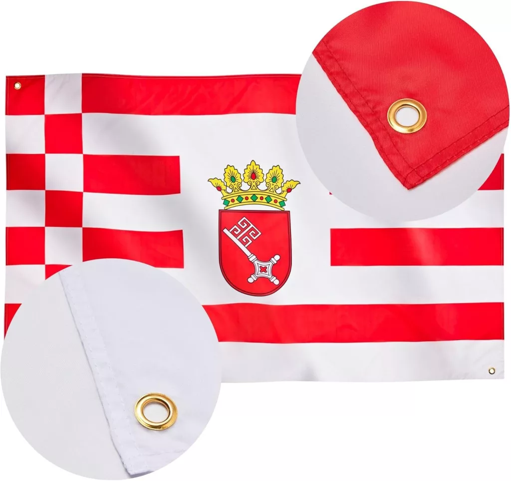 Fie că este vorba de balcon, fereastră sau stâlp de steag, acest steag se potrivește perfect în orice loc. Culorile vii și precise ale orașului Bremen sunt imediat recognoscibile, iar materialul premium asigură că culoarea nu se va decolora de-a lungul anilor.