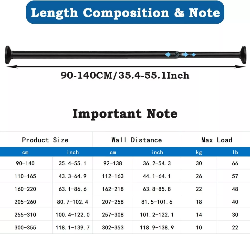 - Rugalmas Hosszúság: 90-140 cm közötti állítható hosszúság, amely szinte bármely nyíláshoz illeszkedik