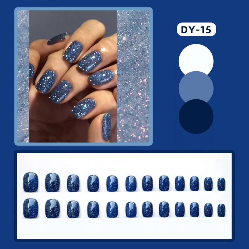 - ???? Rezistența Culorii: Culoarea albastru închis sclipitor nu se estompează, spre deosebire de multe alte unghii false