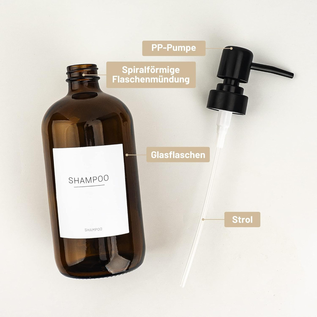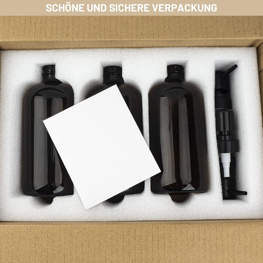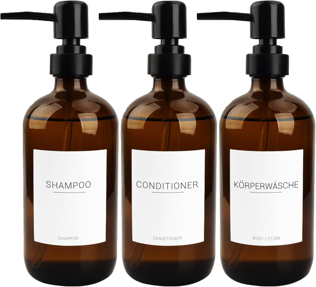Acest set premium de dozatoare de săpun este soluția perfectă pentru organizarea băii și a bucătăriei. Setul conține 3 sticle din sticlă brună de 500 ml, 3 pompe negre și 22 de etichete rezistente la apă, ulei și umezeală. Sticlele au pereți groși, sunt etanșe și nu permit scurgerile, garantând prospețimea conținutului pe termen lung.