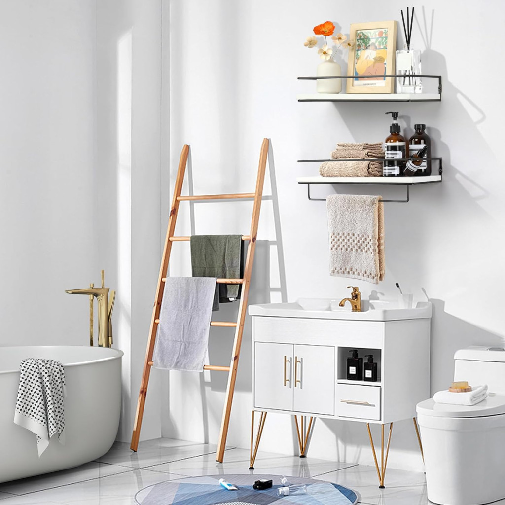 - Suport pentru prosoape detașabil: Suportul metalic pentru prosoape poate fi montat sub raft sau direct pe perete, oferind flexibilitate maximă.