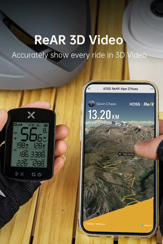 - Funcție video ReAR 3D: Puteți înregistra trasee de 1500 km și apoi le puteți vizualiza în format video 3D în aplicația XOSS