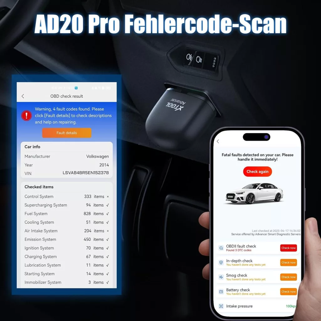 Verificare înainte de achiziționarea unei mașini second-hand - La achiziționarea unei mașini second-hand, poate fi extrem de utilă efectuarea unei diagnosticări rapide. Cu ajutorul AD20 Pro, puteți descoperi defectele ascunse pe care vânzătorul nu le-a menționat, astfel încât să evitați surprizele neplăcute după achiziție.