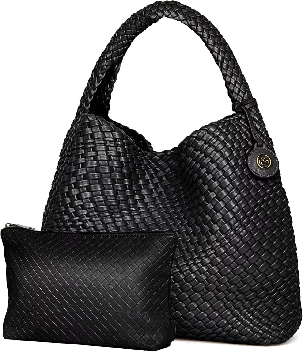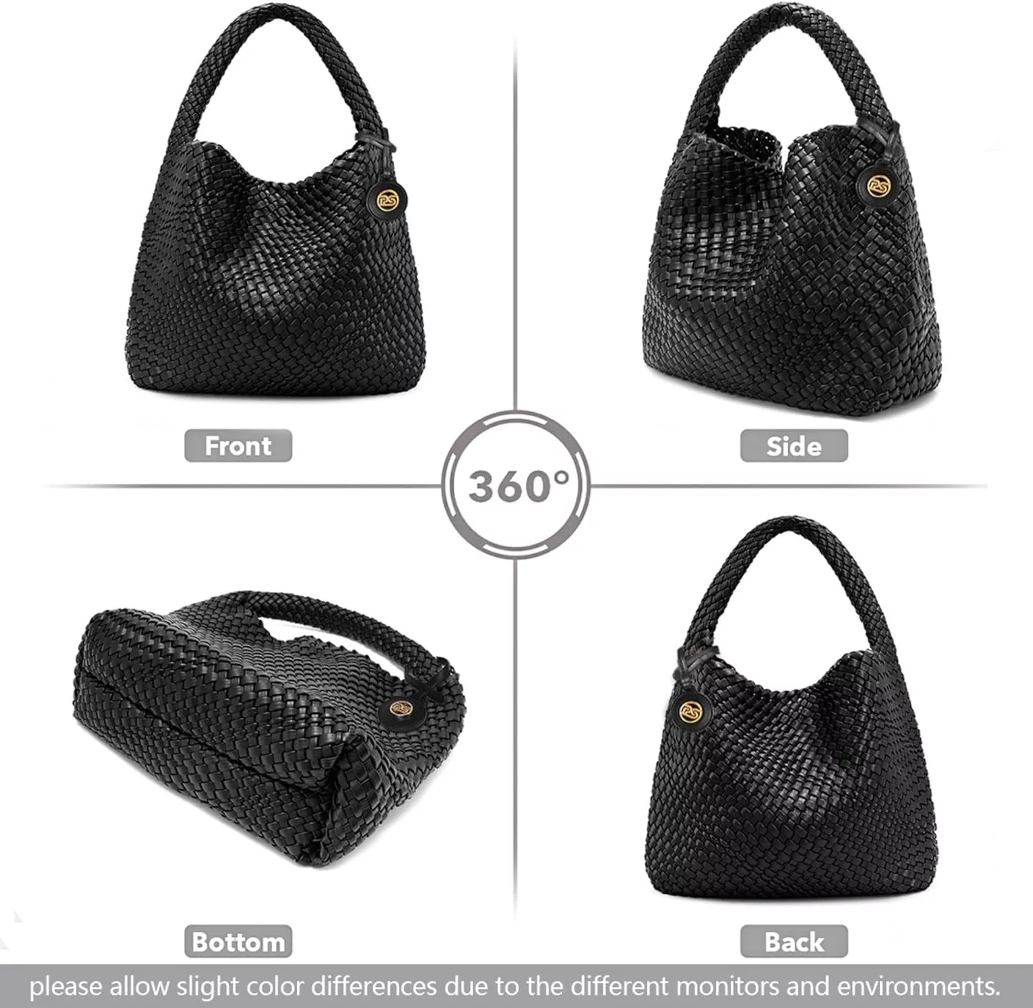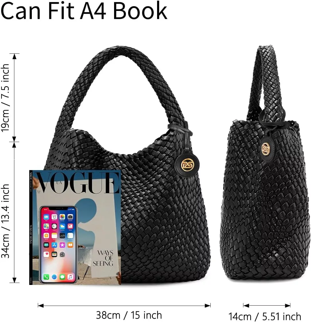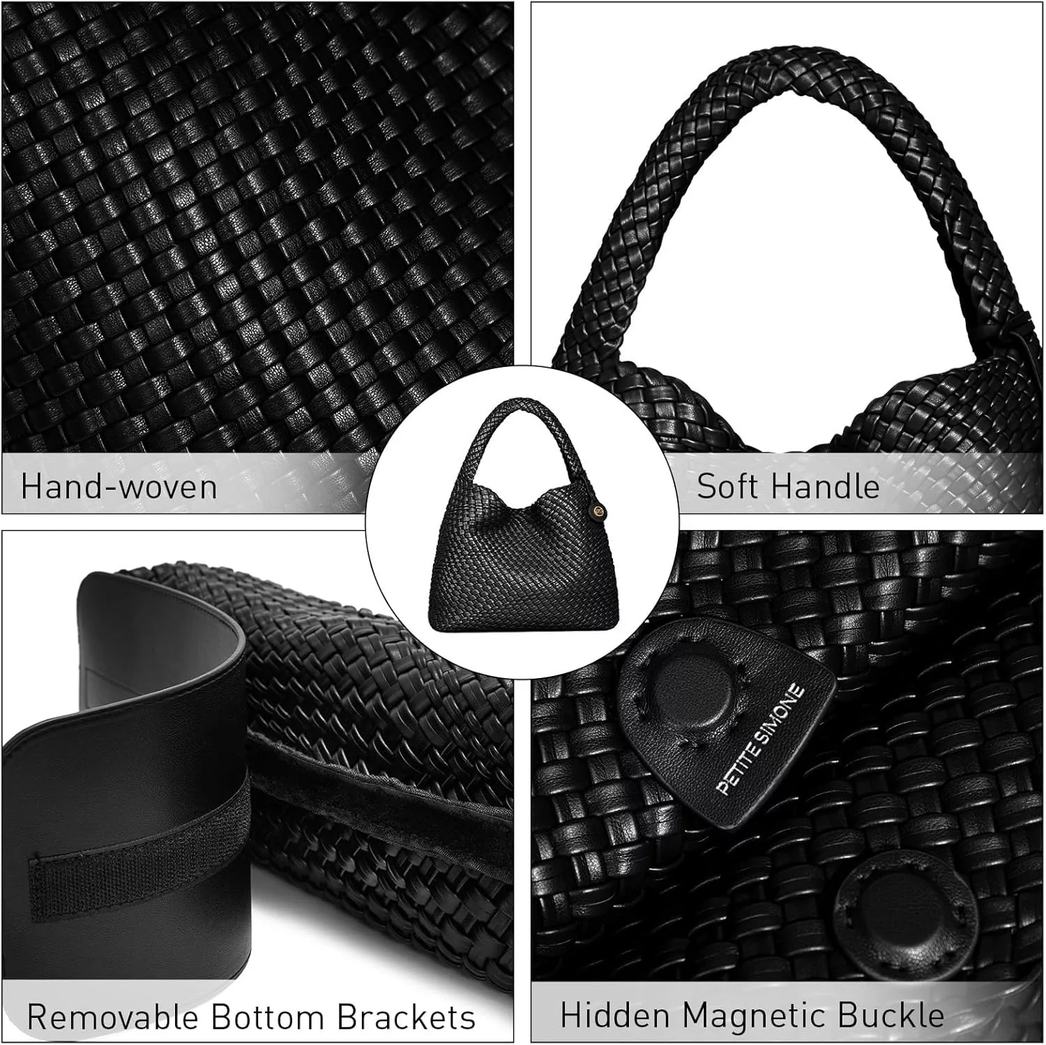 PS PETITE SIMONE Hazel Geantă de damă împletită neagră, geantă de umăr, geantă de mână, pentru școală, serviciu, călătorii