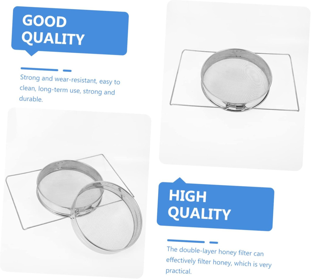 Spre deosebire de filtrele din plastic, acest produs nu preia mirosuri, nu se decolorează și nu se zgârie atât de ușor. Suprafața finisată prin lustruire nu este doar mai estetică, ci și mai sigură în timpul utilizării. Diametrul de 24 cm este mai mare decât multe produse concurente, ceea ce permite o filtrare mai rapidă, în special atunci când se procesează cantități mai mari de miere.