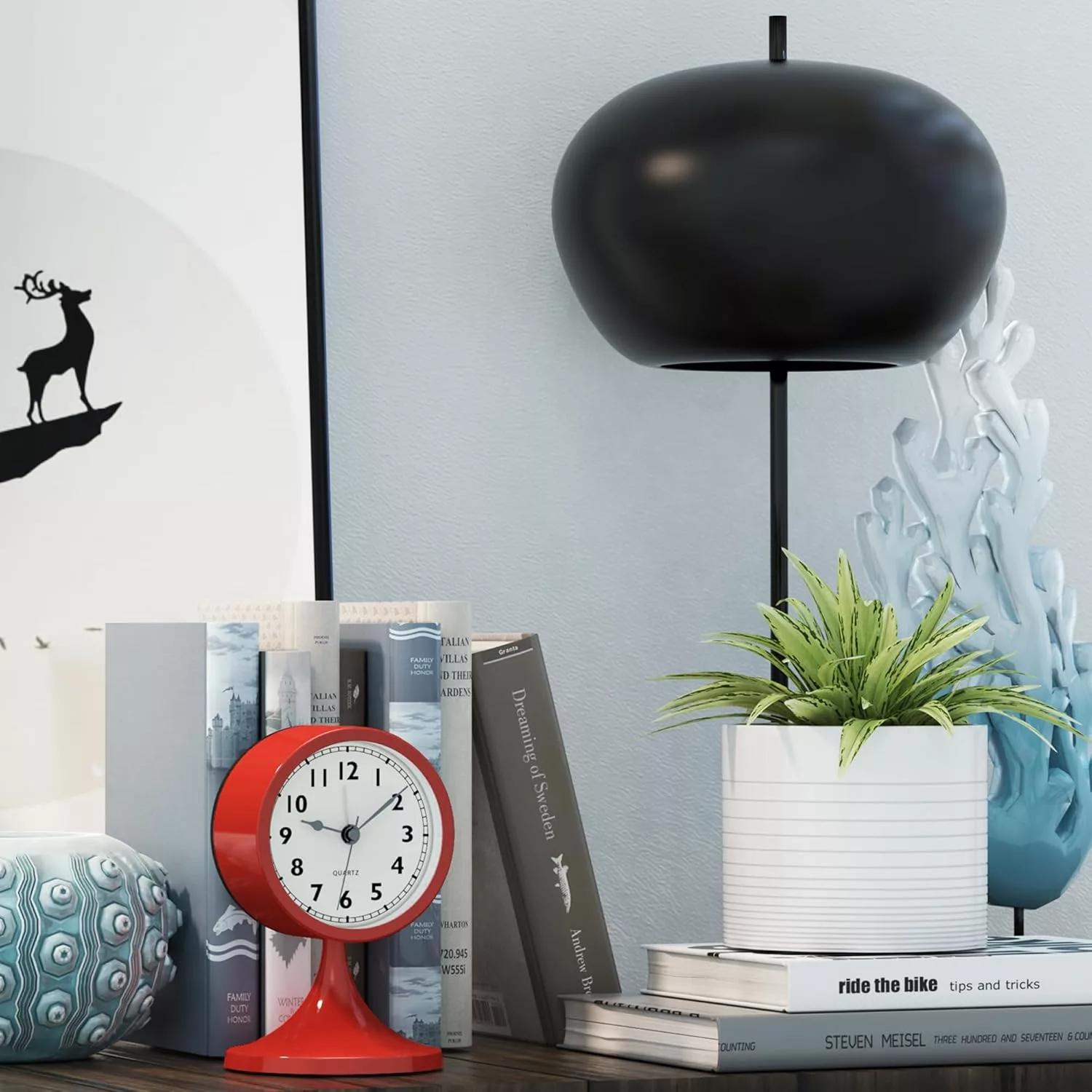 Ceasul este potrivit pentru o plasare universală, deoarece funcționează pe baterii și nu necesită conectare la rețeaua electrică. Se integrează armonios în orice stil de amenajare – fie că este vorba despre un design modern, vintage, clasic sau eclectic. Carcasa metalică roșie poate fi combinată în mod deosebit de bine cu mobilier alb, gri sau din lemn.