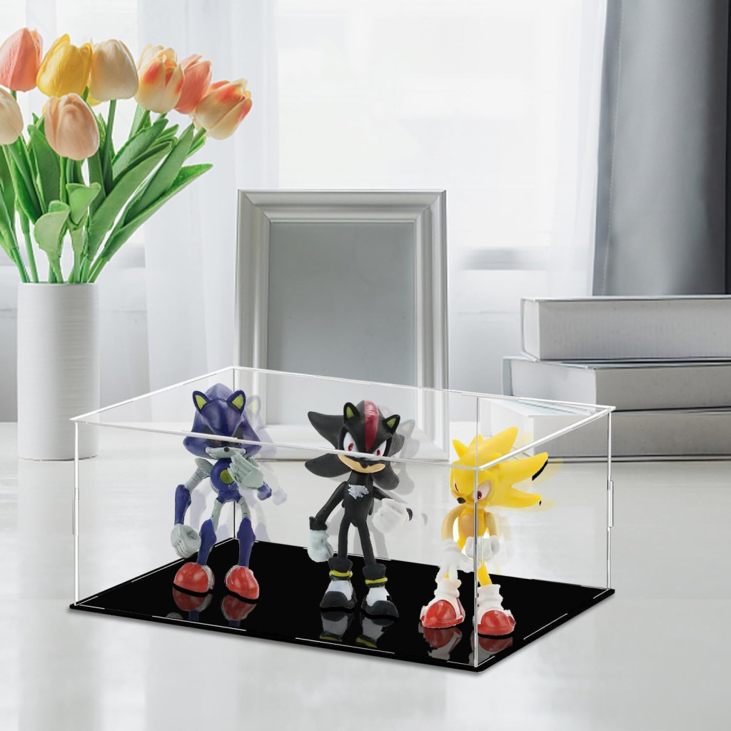 Vitrină acrilică TDEU pentru figurine LEGO - Cutie de expunere anti-praf cu bază neagră pentru modele Funko Pop, figurine de acțiune - 35 x 25 x 15 cm