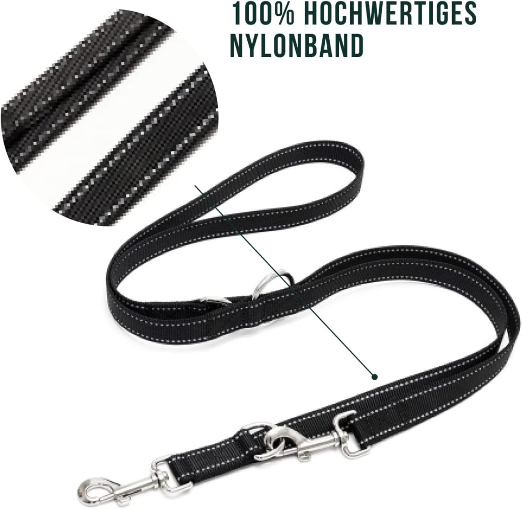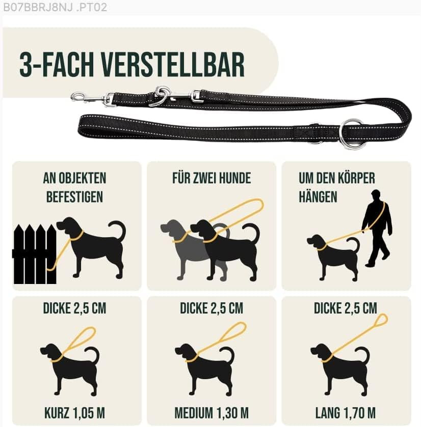 Lesa ajustabilă Happilax de 2 metri pentru câini este soluția perfectă pentru orice proprietar de câine care caută o lesă sigură, durabilă și versatilă. Această lesă premium nu este doar un simplu instrument pentru plimbarea câinilor, ci și un accesoriu bine gândit, multifuncțional, care se adaptează diferitelor nevoi și situații. Lesa neagră, cu elemente reflectorizante, asigură o vizibilitate excelentă pentru plimbările de seară, în timp ce lungimea ajustabilă în 3 trepte vă permite să o utilizați întotdeauna în funcție de situația respectivă.
